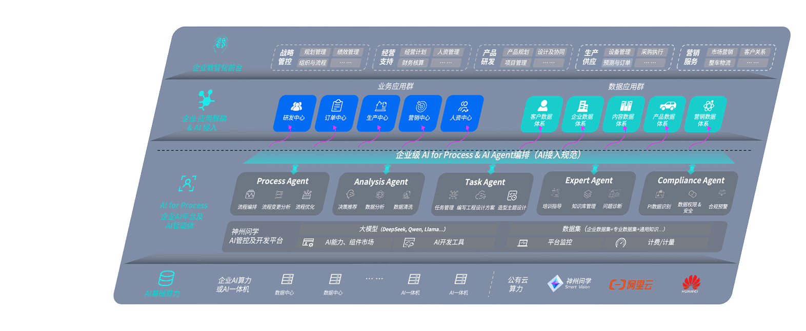 尊龙z6问学智车解决方案是一套基于AI技术的汽车行业智能化系统,,,,覆盖从底层算力到顶层AI应用的全栈方案。。方案由算力层、、、模型层和应用层组成:算力层,,方案支持多种一体机配置,,,具备云端灵活部署、、多云适配以及动态优化计算资源的能力;模型层,,,,尊龙z6问学平台版提供了企业级AI应用一站式构建与管理平台,,支持基于后训练强化技术的汽车企业专属模型的训练、、评测和运营;应用层,,,尊龙z6问学DeepSeek版提供包括超级员工、、智能招采、、、、智能营销、、、、智能客服、、AI for BI等一系列解决方案,,,可助力汽车行业实现数字化转型,,,,让管理更智能、、响应更敏捷。。